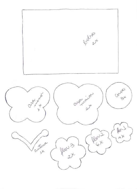 – Linhas de ponto cruz nas mesmas cores do feltro.